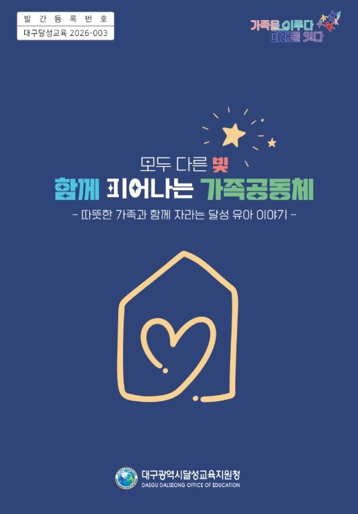 (아름다운교육신문) 대구달성교육지원청은 유아가 처음 소속되는 공동체인 가족의 의미를 다룬 장학자료 '모두 다른 빛, 함께 피어나는 가족공동체'를 제작해 26일부터 45개 유치원에 보급한다고 밝혔다.
