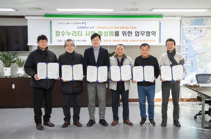 (아름다운교육신문) 인천 서구는 지난 28일 인천광역시 서구 전통시장 상인회와 서구민의 건강한 노후를 지원하고 지역사회 돌봄 체계를 구축하기 위한 ‘장수누리터 사업 활성화’ 업무협약을 체결했다.
