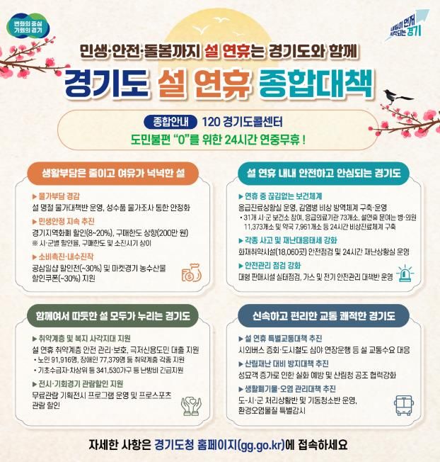 (아름다운교육신문) 경기도가 도민들이 따뜻하고 편안한 명절을 보낼 수 있도록 ‘설 연휴 종합대책’을 추진한다.