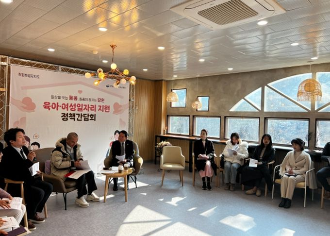 (아름다운교육신문) 강원특별자치도교육청은 2월 12일 강원특별자치도교육청유아교육원에서 육아 중인 부모와 경력단절여성 등 20여 명이 참석한 가운데, 강원특별자치도와 함께하는 ‘육아지원·여성일자리 정책간담회’를 개최했다.