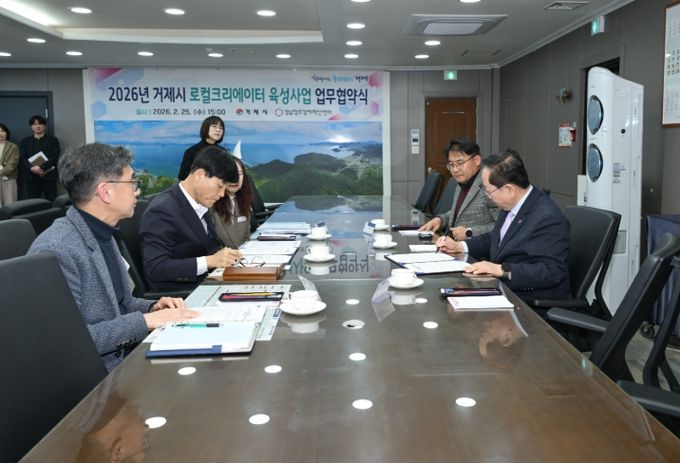 (아름다운교육신문) 거제시는 지난 25일 시장실에서 (재)경남창조경제혁신센터 와 지역 특화 자원을 활용해 창업가를 발굴하고 육성하는 '2026년 거제시 로컬크리에이터 육성 사업' 업무협약을 체결했다.