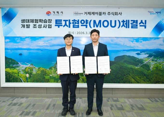 (아름다운교육신문) 거제시는 23일, 거제케이블카 주식회사와 지역 관광 활성화 및 생태교육 인프라 확충을 위한‘생태체험학습장 개발 조성사업’투자협약(MOU)를 체결했다.