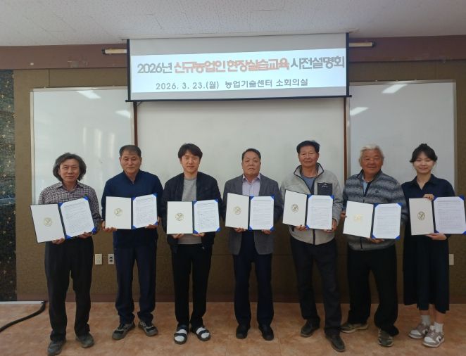 (아름다운교육신문) 증평군농업기술센터는 지난 23일 귀농 연수생 및 선도 농가와 2026년 신규농업인 현장실습 교육 약정서를 체결하고 사전교육을 진행했다고 밝혔다.