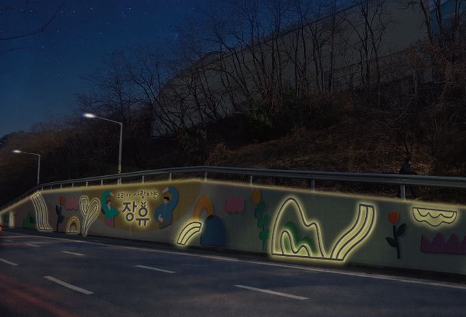 먼저 ‘장유병원사거리 도로변 벽화설치사업’은 시민이 직접 제안해 선정된 주민참여예산사업으로 삼문동 장유병원(누가병원)사거리 일원 도로변 옹벽 110m 구간에 자연과 도시가 공존하는 장유의 이미지를 담은 디자인으로 벽화와 모자이크 타일을 설치해 삭막한 도로 환경을 개선한다.
