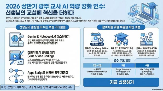![[포스터] 광주시교육청, 생성형 AI 활용 ‘맞춤형 교원 연수’ 운영](/data/photos/portnews/202603/20260325155453-82071.jpg)