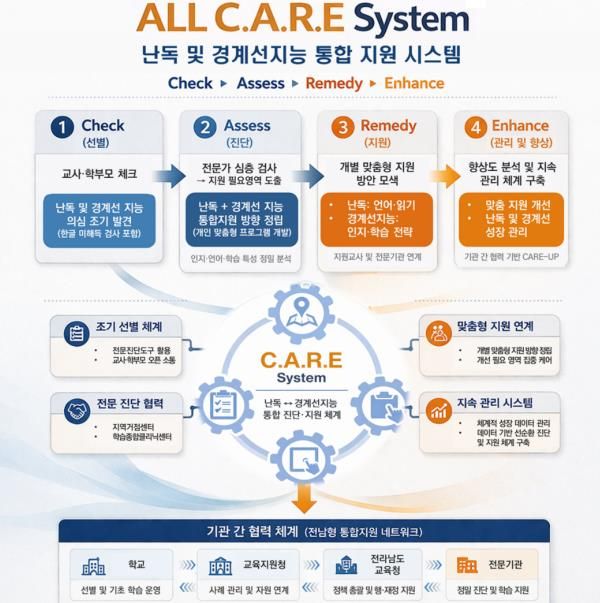 (아름다운교육신문) 전라남도교육청은 경계선 지능 학생과 난독 학생의 맞춤 지원을 위한 ‘전남형 기초학력 보장 체계’를 한층 강화한다.