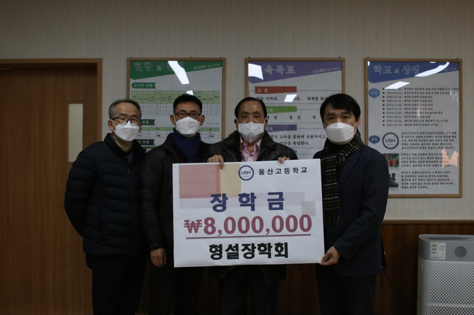 울산고등학교(교장 박광호)는 지난 21일 형설장학회(회장 홍규섭)에서 장학금 800만 원을 기탁 받았다고 전했다. 형설장학회는 9회 졸업생인 홍규섭 회장이 개인적으로 조성한 장학회로 수년째 울산고등학교에 장학금을 기탁해 오고 있다.