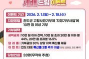 (아름다운교육신문) 진도군은 설 명절을 맞아 고향사랑기부제의 참여를 확대하고 지정기부사업을 홍보하기 위해 2월 1일부터 18일까지 ‘설맞이 세배 드림 이벤트’를 진행하고 있다. 이번 이벤트는 설 명절의 의미를 담아, 진도군 고향사랑기부제 지정기부사업에 10만 원 이상을 기부한 기부자를 대상으로, 추첨을 통해 특산품 2종(진도 홍주, 진도 곱창김)을 추가 제공해, 총 3종 이상의 진도 특산품을 제공하는 ‘세배 드림’ 행사다. 이에 따라 지정기부사업 기부자는 세액공제 혜택은 물론, 기부금 30% 상당의 답례품을 포함해 총 3종 이상의 특산품을 받을 수 있다. 진도군의 지정기부사업은 ‘보배섬 진도의 아이들을 지켜주세요!’ 사업으로, 진도군 지정병원의 소아청소년과 의료진에 대한 인건비를 지원해 지역 의료 기반(인프라)을 강화하기 위한 목적으로 추진되고 있다. 진도군은 이번 이벤트를 통해 지정기부사업에 대한 관심을 높이고, 기부금이 지역의 시급한 의료 현안을 해결하는 데 활용되도록 할 계획이다. 김희수 진도군수는 “설 명절을 맞아 기부의 의미를 느끼고 혜택을 누릴 수 있도록 상생 이벤트를 진행한
