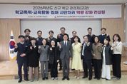(아름다운교육신문) 울산 강남교육지원청은 24일 대청마루에서 신규 학교 관리자(교감) 13명을 대상으로 학교폭력과 교육활동 침해 사안 처리 역량 강화 연수를 열었다. 이번 연수는 학교 현장에서 빈번하게 발생하는 학교폭력과 교육활동 침해 사안에 대해 전문적인 대응 역량을 높이고, 공정하고 신속한 사안 처리 체계를 확립하고자 마련됐다. 특히 사안 처리의 절차적 정당성과 객관성을 확보하는 동시에, 피해 학생 보호와 교육활동 보호를 강화하는 데 중점을 뒀다. 연수 과정은 학교폭력 사안 처리 절차와 주요 유의 사항, 교육활동 침해 사안 대응과 보호 조치, 관련 법령 지침 안내 등 실무 전반을 체계적으로 다뤘다. 신규 관리자들이 실제 학교 현장에서 마주할 수 있는 다양한 갈등 상황에 즉각 활용할 수 있는 실질적인 대응 전략을 제공하는 데 초점을 맞췄다. 특히 회복적 생활교육 전문가인 울산중앙중학교 김경익 교감이 강사로 나서 실제 학교 현장에서의 다양한 사례를 중심으로 갈등 상황에서의 관계 회복 과정과 학생 간 상호 이해를 끌어내는 실제 적용 사례를 안내했다. 단순한 행정적 처리에 그치