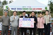 (아름다운교육신문) 장수군은 지난 24일 오산시와의 지속적인 교류 협력과 ‘고향사랑기부제’ 활성화를 위해 장수군 농업기술센터에서 뜻깊은 기탁식을 가졌다고 밝혔다. 이번 행사는 장수군의 대표 농특산물인 사과 수확 체험과 함께 진행되어 양 지역 주민 간 우정을 다지고 상생 발전을 다짐하는 의미 있는 시간으로 마련됐다. 이날 오전에는 오산시민들이 장수군의 청정 자연 속 사과밭에서 탐스럽게 익은 사과를 직접 수확하며 장수 사과의 품질과 풍미를 체험했다. 현장에서는 사과 수확 요령과 품질 관리 과정에 대한 설명이 이어졌고, 참가자들은 자신이 딴 사과를 상자에 담아 1인당 5kg씩 가져가며 즐거운 추억을 쌓았다. 사과따기 체험을 마친 후, 오후에는 장수군 농업기술센터에서 ‘고향사랑기부제 기탁식’이 열렸다. 이날 기탁식에는 최훈식 군수와 이권재 오산시장, 오산시 교류협회 심재철 회장을 비롯한 양 지자체 관계자와 주민 등 60여 명이 참석했으며, 심 회장은 장수군에 고향사랑기부금 100만 원을 전달해 훈훈한 분위기를 더했다. 심재철 오산시 교류협회장은 “고향의 발전은 우리 모두의 관심과
