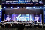 (아름다운교육신문) 장수군은 8일 한누리전당 산디관에서 ‘농어촌 기본소득 비전 선포식’ 행사가 성황리에 개최됐다고 밝혔다. 이날 행사는 장수군이 농어촌 기본소득 국가 공모사업에 추가 선정된 것을 군민과 함께 축가하고 ‘기본소득을 통해서 꿈을 가꾸는 희망의 도시 장수’라는 기본사회 실현을 위한 비전을 선포하는 의미 있는 자리로 마련됐다. 행사에는 최훈식 장수군수를 비롯해 최한주 군의회 의장과 군의원들, 박용근 전북특별자치도의원, 기관사회단체장, 군민 등 약 900여 명이 참석해 뜨거운 열기를 더했다. 이날 행사에서는 장수 풍물단과 난타 식전 공연을 시작으로 △기본소득 선정 경과보고 △기념사 및 축사 △비전 선포식 △기념 퍼포먼스 등 다양한 프로그램이 진행됐다. 이정우 부군수의 경과보고에서는 농어촌 기본소득 공모 선정 과정과 그동안의 준비 절차, 제도 도입의 필요성, 향후 추진 일정 등 기본소득 시행을 위해 반드시 알아야할 내용을 중심으로 설명이 이루어졌다. 또한 행사장에서는 군민들이 기본소득 선정에 대해 전하는 소감과 기대를 담은 ‘군민의 소리’ 인터뷰 영상이 틀어져 군민들이 다함께 박