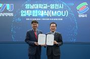 (아름다운교육신문) 영천시는 28일 영남대학교 천마아트센터 이시원 글로벌컨벤션홀에서 영남대학교와 지역 발전과 혁신 생태계 조성을 위한 상호 협력 업무협약(MOU)을 체결했다. 이번 협약은 양 기관이 자원 공유와 프로그램 공동 운영 등 상호 교류와 협력에 필요한 사항을 합의한 것이다. 주요 내용으로는 ▲경북 RISE 사업 공동 대응 ▲AI 등 신산업 인력양성 ▲문화·인문 콘텐츠 개발 ▲국가 공모사업 공동 참여 ▲공동 학술행사 개최 및 인적 교류 활성화 등으로, 지역사회와 대학이 함께 성장할 수 있는 협력 기반을 마련했다. 협약식 이후 진행된 ‘YU프론티어 포럼’에서는 최기문 영천시장이 ‘지방소멸시대, 변화와 혁신으로 영천의 미래를 디자인한다’를 주제로 강연을 펼쳤으며, 대학의 우수한 연구 역량과 지역 산업을 연결해 지속 가능한 혁신 생태계를 조성하는 것이 지역 발전의 핵심임을 강조했다. 최기문 시장은 “이번 협약을 계기로 지역과 대학이 긴밀히 협력해 미래 성장 동력을 발굴하고, 지속 가능한 발전 기반을 마련하겠다”며, “앞으로도 대학과 지역사회가 함께 성장할 수 있는 다양한 협력 사업을 적극 추진해,
