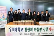 (아름다운교육신문) 완주군이 24일 우석대학교 교양관에서 2026년 ‘천 원의 아침밥’ 사업의 시작을 알리는 행사를 열고 올해 본격적인 사업 추진에 나섰다. 이날 행사에는 유희태 완주군수와 박노준 우석대학교 총장, 이순덕 군의원, 김정은 사회적협동조합 양지뜰 대표 등이 참여해 바쁜 학업으로 아침 식사를 거르는 대학생들에게 로컬푸드 식재료로 만든 식사를 직접 배식하며 따뜻한 격려를 건넸다. 군은 학생들의 높은 호응을 반영해 올해 운영 규모를 작년보다 대폭 키웠다. 지난해 기준 43일이었던 일수를 올해 80일로 2배 가까이 확대해 운영한다. 이를 통해 더 많은 학생이 학기 중 꾸준히 양질의 아침 식사를 제공받을 수 있게 됐다. 제공하는 메뉴 역시 학생들의 목소리를 적극적으로 반영했다. 지역산 쌀을 활용한 다양한 덮밥류와 완주로컬푸드협동조합(이사장 권승환)과 재단법인 완주공공급식지원센터를 통해 공급받은 신선한 제철 과일 등 영양가 높은 간편식 식단으로 구성해 운영할 예정이다. 유희태 완주군수는 “천 원의 아침밥 사업은 청년들이 건강하게 미래를 준비하도록 돕는 핵심적인
