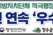 (아름다운교육신문) 장수군이 전국 최고 수준의 행정 역량을 다시 한번 입증했다. 장수군은 행정안전부가 주관한 ‘2025년 지방자체단체 적극행정 종합평가’에서 우수기관으로 선정됐다고 26일 밝혔다. 이로써 군은 4년 연속 우수기관에 이름을 올리는 성과를 거뒀다. 이번 평가는 전국 243개 지방자치단체를 대상으로 적극행정 활성화 노력, 이행성과, 군민 체감도, 우수사례 등 5개 항목 18개 지표를 종합적으로 심사한 결과 장수군은 전 부문에서 고르게 높은 점수를 획득하며 지속가능한 행정혁신 역량을 인정 받았다. 특히 군민이 직접 체감할 수 있는 생활 밀착형 행정 사례가 빛을 발했다. 보건지소와 약국이 인접한 의약분업지역인 산서면에서 약국 운영 공백이 반복되자 보건복지부에 의약분업 예외지정을 적극 건의해 지역 주민의 의료서비스 접근성을 높이고 주민 불편을 해소한 ‘의약분업 예외지역 지정‘이 높은 평가의 견인차 역할을 했다. 공직사회 내 적극행정 문화 정착을 위한 내부 체질 개선 노력도 돋보였다. 군은 적극행정을 실천한 공무원에게 인센티브를 제공하고, 적극행정 면책보호제