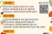(아름다운교육신문) 성주군은 의료급여수급권자의 건강관리를 강화하고 건강검진 참여율을 높이기 위해 ‘의료급여수급권자 일반건강검진 수검 이벤트’를 추진한다고 밝혔다. 이번 이벤트는 성주군에 거주하는 의료급여수급권자 중 20세에서 64세(1961년~2005년생) 사이의 홀수년도 출생자를 대상으로 진행되며, 2025년 10월 20일부터 11월 20일까지 일반건강검진을 받은 대상자가 참여할 수 있다. 참여 방법은 검진기관에 전화 예약 후 무료 일반건강검진을 완료한 뒤,성주군보건소 의약무팀을 방문해 상품을 수령하면 된다. 상품 수령 시에는 검진 병원명과 날짜가 확인 가능한 서류 및 신분증을 지참해야 한다. 보건소에서는 검진을 실시하지 않고 있으므로, 국민건강보험공단의 ‘검진기관 찾기(QR코드)’를 참고해 직접 예약해야 하며, 필요한 경우 보건소로 전화하면 검진기관 안내를 받을 수 있다. 이벤트 기간은 2025년 10월부터 상품 소진 시까지이며, 선착순 100명에게 소정의 상품을 증정한다. 성주군 보건소 관계자는 “이번 이벤트를 통해 의료급여수급권자분들이 건강검진에 더욱 관심을 가지고 스스로의 건강