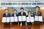 (아름다운교육신문) 금산군은 지난 20일 군청 상황실에서 농식품 수출확대를 위해 금산인삼농협, (재)충남테크노파크, ㈜트리코스, 코리안 룩스(KOREAN LUXE)와 5자간 업무협약을 체결했다. 이번 업무협약을 통해 군은 지역 농식품의 글로벌 시장 확대를 위해 업체들과 협력할 방침이다. 특히, (재)충남테크노파크의 지원 사업을 계기로 진행된 카자흐스탄 수출상담회의 성과를 바탕으로 카자흐스탄을 포함한 중앙아시아 시장으로의 수출 확대에 나선다. 협력 기관들은 신뢰를 바탕으로 공동의 목표를 위해 긴밀히 협력할 계획이며 금산군 농식품의 품질과 경쟁력을 강화하고 이를 국제 시장에 적극적으로 알리기 위한 글로벌 마케팅을 전개한다. 군 관계자는 “이번 협약을 통해 금산군 농식품이 카자흐스탄 시장을 넘어 중앙아시아 전역으로 확장할 수 있는 가능성을 보여줬다”며 “금산군 농식품이 글로벌 시장에서 경쟁력을 갖출 수 있도록 노력하겠다”고 말했다. 이어 “계속해서 금산군 농식품 산업 발전에 기여하고 지속 가능한 글로벌 파트너십을 구축할 수 있도록 최선을 다하겠다”고 덧붙였다.