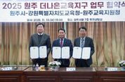 (아름다운교육신문) 강원특별자치도교육청은 원주시, 원주교육지원청과 11월 18일 원주시청에서 ‘원주 더나은교육지구 연장지정 업무협약’을 체결했다. 이번 협약은 2018년 제1기 4년, 2022년 제2기 4년 운영에 이어 2026년부터 4년간 제3기 더나은교육지구 사업을 새롭게 추진하기 위해 마련됐다. 세 기관은 ‘배움과 성장, 문화예술로 동행하는 원주’라는 비전 아래 학교와 지역이 함께 성장하는 지속가능한 교육생태계 조성을 위해 매년 4억 원(교육청 2억 원, 군 2억 원)을 공동 지원한다. 원주 더나은교육지구는 학생의 전인적 성장을 지원하는 지역 중심 교육협력 사업으로, 학교·지자체·지역사회가 협력하는 ‘배움과 성장의 지역교육공동체’를 구축하고 있다. 지구중점 공동사업으로 △‘원주 한바퀴’ 원주 탐방 프로젝트 △‘원주 한바탕’ 원주 체험 프로젝트를 운영해 학생들이 지역의 역사·문화·자연을 탐방하며 원주 시민으로서의 정체성과 자긍심을 기를 수 있도록 돕는다. ‘예술 피움’ 사업은 △‘꿈키움’ 찾아가는 문화예술 소공연 △‘꿈그림’ 그림책·영상 창작 프로젝트 △‘꿈도약’ 리더십 스포츠 프로그램 등을