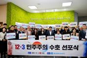 (아름다운교육신문) 광주시교육청은 3일 본청 북카페에서 교직원, 학생의회 소속 학생들이 참여한 가운데 ‘12·3 민주주의 수호 선포식’을 개최했다. 이날 선포식은 지난해 헌법 가치를 훼손한 12·3 비상계엄 사건을 잊지 않고, 민주주의를 수호하고자 한 시민들의 노력을 기억하기 위해 마련됐다. 특히 시교육청은 헌법과 민주주의를 지키기 위한 교육의 역할을 되새기고자 ‘광주교육 민주주의 수호 선언문’을 선포했다. 이정선 교육감은 선언문을 통해 “광주는 늘 민주주의 수호 선봉에 서왔으며, 광주교육은 광주정신을 실천하는 민주시민을 육성하며 K-민주주의의 초석을 마련했다”며 “모든 교실을 민주주의의 배움터이자 실천의 공간으로 만들겠다”고 밝혔다. 또 ▲헌법을 배우고 실천하는 민주시민교육 강화 ▲5·18 전국화·세계화 ▲학생자치 중심의 학교 민주거버넌스 구축 ▲교원의 민주시민교육 전문성 강화 ▲존중과 다양성에 기반한 교육공동체 구축 등 민주주의 교육 강화를 위한 5대 실천과제를 추진하기로 했다. 이날 행사에는 광주광역시학생의회 학생들이 함께 해 미래세대와 함께하는 민주주의 수호의 상징적 의미를 더했