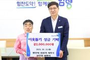 (아름다운교육신문) 함양군은 13일 이병석 사무장(성창기 법무사사무소)이 함양군청을 방문해 취약계층에 전달해 달라며 성금 200만 원을 기탁했다고 밝혔다. 이날 기탁식에 참석한 이병석 사무장은 “이번 기탁이 소외된 이웃들에게 조금이나마 도움이 됐으면 한다”라고 전했다. 이에 진병영 군수는 “작년에 이어 올해도 어려운 이웃들을 위해 성금을 기탁해 주신 이병석 사무장님께 감사드린다.”라며 “소외되는 이웃이 없도록 세심하게 살피며, 필요한 분들에게 잘 전달될 수 있도록 최선을 다하겠다.”라고 밝혔다. 이날 기탁된 성금은 경남사회복지공동모금회를 통해 각 읍·면의 어려운 세대에 전달될 예정이다.