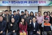 (아름다운교육신문) 영천시는 지난 26일 농업기술센터에서 교육생 29명이 참석한 가운데 ‘제24기 농업대학 포도과정’ 입학식을 개최하고, 본격적인 학사 일정에 돌입했다고 밝혔다. 올해 포도과정은 최근 포도 가격 하락과 기후 변화로 어려움을 겪고 있는 지역 포도 농가의 경쟁력을 확보하고, 급변하는 소비 트렌드에 대응하기 위한 ‘신품종 전환 기술’ 습득에 초점을 맞췄다. 이번 교육은 8월 20일까지 매주 목요일, 총 15회(70시간)에 걸쳐 진행된다. 국내 포도 전문가들이 국내 육성 신품종 특성 및 재배, 품질 고도화를 위한 토양 및 병해충 관리, 가락동 농수산물시장 현장 견학 등 실무 중심의 교육과정을 제공할 예정이다. 특히 이번 기수는 여성 농업인 비중이 48%(14명)에 달해, 영천 농업의 핵심 주체로 떠오른 여성들의 높은 열의를 실감케 했다. 최재열 농업기술센터 소장은 “이번 교육이 단순히 지식을 전달하는 자리를 넘어 영천 포도의 새로운 돌파구를 마련하는 중요한 계기가 되길 기대하며, 수료생들이 고품질 포도 생산에만 전념할 수 있도록 지원을 아끼지 않겠다”며, “70시간의 대장정을