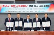 (아름다운교육신문) 창원특례시는 30일 국회의원회관에서 ‘동대구–창원–가덕도신공항 고속화철도’의 제5차 국가철도망 구축계획 반영을 위해 추진 중인 범시민 서명운동(10.17.~11.16.)과 연계해, 사업 추진에 대한 공감대 확산을 위해 ‘동대구–창원 고속화철도 반영 촉구 국회토론회’를 개최했다. 이번 토론회는 윤한홍, 최형두, 김종양, 이종욱, 허성무 국회의원이 공동으로 주최하고 창원특례시가 주관해 ‘동대구-창원-가덕도신공항 고속화철도’의 필요성을 적극 알리고, 사업의 신속한 추진을 촉구하는 창원특례시민의 염원을 하나로 모으기 위해 마련됐다. 창원특례시 국회의원 5명은 “대한민국의 지속가능한 발전은 수도권과 비수도권이 균형 있게 성장하는 데서 시작된다”라며, ‘동대구–창원 고속화철도’가 그 목표를 달성하기 위한 핵심 사업임을 강조했다. 이어, “제5차 국가철도망 구축계획에 이 사업을 반드시 반영하고 조속히 추진할 것”을 한목소리로 강력히 촉구했다. 이날 행사에서는 ‘동대구-창원 고속화철도 반영 촉구 서명식’과 조속한 사업 추진을 염원하는 ‘피켓 세리머니’가 함께 진행되어, 참석자 모두가 사업 추