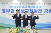 (아름다운교육신문) 순천시는 여수‧광양시와 함께 13일 순천대학교 70주년기념관에서 제41차 여수‧순천‧광양시 행정협의회 정기회의를 열고, 전남 동부권의 미래 경쟁력 확보를 위한 공동건의 3건을 공식 의결했다고 밝혔다. 이번 회의는 이재명 정부의 지방주도성장 기조와 전남‧광주 행정통합 논의에 발맞춰 국가 기간산업의 중심지인 여수‧순천‧광양 지역이 전남광주통합특별시의 핵심 축으로 기능할 수 있도록 법적‧제도적 기반을 마련하는 데 뜻을 모았다. 첫째, ‘전남 동부권 상생균형발전과 산업대전환’을 위한 행‧재정 지원 근거를 특별법에 반영하는 내용이다. 3개 시는 석유화학‧철강 등 기존 주력 산업의 고부가가치화와 탄소중립 사회 전환에 대응해 RE100 기반 미래첨단산업 복합거점을 마련하고 이차전지‧반도체‧우주항공 등 신산업을 육성해 지방이 주도하는 경제 성장의 선도 모델을 완성하겠다는 구상이다. 또한 여수광양항의 북극항로 거점항만 육성과 여수공항 국제공항 승격도 핵심 과제로 건의해 전남 동부권의 글로벌 경쟁력을 확보하겠다는 전략이다. 둘째, 전남광주통합특별시 출범 시 3개 청사의 기능별 본부제 운영의 특별법