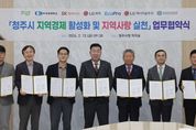 (아름다운교육신문) 청주시는 13일 임시청사 직지실에서 청주상공회의소 및 지역 내 주요 기업과 청주사랑상품권(청주페이) 활성화를 위한 업무협약을 체결했다. 이날 협약식에는 이범석 청주시장과 차태환 청주상공회의소 회장, 박호현 SK하이닉스㈜ 부사장, 김영대 ㈜LG화학 청주공장 대외협력팀장, 최상운 에코프로 부사장, 김용술 ㈜LG에너지솔루션 오창주재임원, 이규득 ㈜심텍 상무가 참여했다. 협약은 지역경제 활성화와 민생경제 회복을 위해 소상공인과의 상생 협력을 강화하고, 지역 내 소비를 촉진하기 위해 마련됐다. 협약의 주요 내용은 △직원들에게 지급하는 선택적 복지제도(복지포인트, 포상금 등) 중 일부를 청주페이로 지급하는 방안 마련 △설·추석 등 명절 기간 전통시장 장보기 행사 추진 △청주페이 사용 적극 홍보 등이다. 특히, 지난 9일 복대가경시장에서 열린 설맞이 전통시장 장보기 행사에는 이번 협약에 참여한 기업 중 에코프로와 ㈜심텍 임원들이 이범석 청주시장과 함께 참여해 지역 상생의 의미를 더했다. 이 시장은 “지역경제 활성화를 위한 이번 협약에 적극 동참해준 기업들의 지역사랑 실천 의지에