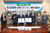 (아름다운교육신문) 의령군이 요금 0원, 이동권 100%를 목표로 한 버스 완전공영제를 전면 시행한다. 지자체가 노선과 인력, 운영 전반을 직접 책임지는 ‘완전공영제’는 전국에서도 손에 꼽히는 사례로, 경남에서는 의령군이 처음이다. 의령군은 지난 24일 버스 완전공영제 시행을 위해 민간 운수업체 2개사와 농어촌버스 노선권, 버스터미널 등 재산권에 대한 유·무형자산 양도·양수 계약식을 체결했다. 이번 계약을 통해 군은 버스 운영에 필요한 자산을 확보하고, 공영제 전면 시행을 위한 제도적·행정적 기반을 마련했다. 군은 연초 두 달간 협업 운영을 거친 뒤 3월부터 ‘경남형 버스 완전공영제’를 본격 시행할 계획이다. 이번 사업은 의령군이 시행 주체가 되되, 경남도와 정책 방향을 공유하며 향후 도 전반으로 확산 가능한 모델이라는 의미에서 ‘경남형 버스 완전공영제’라는 이름으로 추진된다. 공영제 도입은 인구 감소와 자가용 이용 증가로 인한 이용객 감소, 적자 노선 확대 등 농어촌 지역 교통의 구조적 문제를 해결하기 위한 근본적인 대안으로 평가되고 있다. 오태완 군수는 “버스 완전공영제