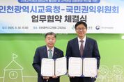 (아름다운교육신문) 인천광역시교육청은 9월 30일 국민권익위원회와 청렴한 미래인재 양성과 교육 현장의 청렴 문화 확산을 위한 업무협약을 체결했다. 이번 협약은 미래세대가 청렴의 가치를 자연스럽게 체득하고 교육 현장 전반에 청렴 문화를 내재화하기 위해 마련됐다. 주요 협약 내용은 ▲초·중·고 학생 대상 청렴교육 활성화를 위한 제도개선 과제 발굴 ▲학생 눈높이에 맞는 청렴교육 콘텐츠 개발 및 활용 ▲교육재정 운영의 건전성 제고를 위한 부정수급 예방과 관리 강화 ▲부패 취약 분야 개선을 위한 공동 노력 등이다. 도성훈 교육감은 “이번 협약이 단순한 제도적 약속을 넘어 미래세대와 교육공동체 전반의 청렴 문화를 획기적으로 확산시키는 출발점이 되기를 기대한다”며 “누구도 소외되지 않고 모두가 공정한 기회를 누리는 학교, 다양성을 존중하며 투명하게 운영되는 교육환경을 조성하는 데 최선을 다하겠다”고 말했다.