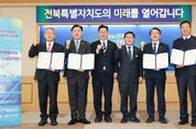 (아름다운교육신문) 전북특별자치도가 9일 도청에서 새만금개발청, 한국전력공사, 한국수력원자력㈜와 함께 '새만금 수상태양광(1단계) 발전사업'의 적기 구축을 위한 상호 협력 업무협약(MOU)을 체결했다. 협약식에는 김관영 전북자치도지사와 김성환 기후에너지환경부 장관, 안호영 기후에너지환경노동위원회 위원장, 김의겸 새만금개발청장, 김동철 한국전력공사 사장, 전대욱 한국수력원자력㈜ 사장 직무대행이 참석했다. 새만금 수상태양광 1단계 사업은 약 13.5㎢ 수역에 1.2GW 규모의 태양광 발전시설을 설치하는 총사업비 3조 원 규모의 대형 프로젝트다. 완공 시 연간 약 1,700GWh의 친환경 전력을 생산할 수 있으며, 이는 약 35만 가구가 1년간 사용할 수 있는 전력량에 해당한다. 이번 협약은 새만금 지역의 대규모 재생에너지 사업인 수상태양광(1단계) 발전사업을 차질 없이 추진하고, 조속한 계통 연계를 통해 새만금의 풍부한 재생에너지를 RE100 산업단지에 안정적으로 공급하기 위한 전력설비를 조기에 구축하는 데 목적이 있다. 협력을 통해 한전의 전력 인프라가 조기에 구축되면, 새만금 재생에너지의 적기 연계