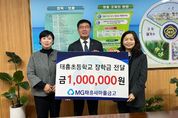 (아름다운교육신문) 제주도교육청 태흥초등학교는 태흥새마을금고로부터 졸업생을 위한 장학금 100만 원을 기탁받았다고 23일 밝혔다. 태흥새마을금고는 지역 금융기관으로서 해마다 태흥초등학교 졸업생들에게 장학금을 지원하며 지역 인재 양성과 나눔 문화 확산에 꾸준히 앞장서고 있다. 올해 기탁된 장학금은 졸업을 앞둔 학생들에게 전달돼 새로운 출발을 응원하는 데 사용될 예정이다. 오정미 교장은 “매년 학생들의 성장을 응원하며 따뜻한 나눔을 실천해 주시는 태흥새마을금고에 깊이 감사드린다”며 “이번 장학금이 졸업생들에게 꿈을 향해 나아갈 용기와 희망이 되기를 바란다”고 말했다.