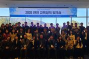 (아름다운교육신문) 경기도연천교육지원청은 2월 25일부터 26일까지 가평 마이다스에서 유·초·중등 교(원)장을 대상으로 ‘2026 연천 교육정책 워크숍’을 운영한다. 이번 워크숍은 2026 연천교육 기본계획과 함께 학교맞춤형 공유학교, 교육발전특구, 국제교류협력 등 주요 정책을 학교 현장에 효율적으로 적용하기 위한 방안을 모색하고, 학교 관리자 간 협력 및 네트워크를 강화하기 위해 마련됐다. 이번 워크숍에서는 먼저 연천교육지원청 연천교육의 핵심 방향성을 제시하며, 2026 연천교육의 주요 과제를 소개했다. 이어서 ‘경기미래교육정책의 이해’를 주제로 경기도교육청 서혜정 정책기획관 특강을 통해, 미래교육 환경 변화와 학교의 대응 전략을 공유하며 학교 관리자들은 미래교육을 선도할 실천 전략을 보다 구체화하는 기회를 마련했다. 또한 지구장학협의회와 토론을 통해 학교 현안을 논의하고, 학교 관리자 간 협력 네트워크를 강화하는 시간을 가졌다. 참석자들은 학교 현장의 다양한 사례를 공유하며 정책 실행력 제고를 위한 실천 방안을 함께 모색했다. 특히 질의응답과 현장 의견 수렴 시간을 통해 학교 현장의 의견을 듣고 정책 추진 과정에 반영할