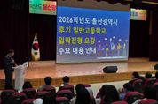 (아름다운교육신문) 울산광역시교육청은 ‘2026학년도 울산광역시 후기 일반고등학교 입학 전형 요강 학부모 설명회'를 열고 고입 정보를 안내했다. 30일 울산과학관 빅뱅홀에서 열린 설명회에는 중학교 3학년 학부모와 교육청 관계자 등 100여 명이 참석했다. 이날 울산교육청은 후기 일반고 입학 전형 학생 선발 방법과 배정에 대한 주요 내용을 안내했다. 중학교 내신성적은 교과 영역 80%와 비교과영역 20%를 합산해 산출한다. 교과 영역의 학년별 반영 비율은 2학년 40%, 3학년 60%를 반영한다. 비교과영역은 출석성적 40%, 봉사활동 성적 20%, 행동 발달 상황 성적 20%, 창의적 체험 활동 성적 20%를 합산해서 산출한다. 후기 일반고 학생 배정은 희망 배정과 임의 배정으로 나뉜다. 희망 배정은 1단계 전체 학군에서 20%, 2단계 거주 학군에서 40%로 나눠 추첨하며, 희망 배정에서 탈락한 학생은 통학 여건 등을 고려해 거주 학군, 인접 학군에 배정된다. 학생 선발은 중학교 내신성적에 의해 남녀 구분 없이 고등학교 수용 인원만큼 선발하며,