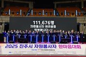 (아름다운교육신문) 진주시 자원봉사단체협의회(회장 심명환)는 6일 진주실내체육관에서 자원봉사자와 시민 등 2300여 명이 참석한 가운데 ‘2025 진주시 자원봉사자의 날 기념 한마음대회’를 성황리에 개최했다. 이번 행사는 자원봉사의 날(12월 5일)을 앞두고 마련된 자리로 한 해 동안 지역 곳곳에서 헌신과 나눔을 실천한 자원봉사자들의 노고를 격려하고, 시민과 함께 자원봉사의 가치와 의미를 되새기는 뜻깊은 시간이 됐다. 이날 행사에서는 △그동안 지역사회를 위해 힘쓴 봉사단체의 단체기 입장 △1년간의 자원봉사 활동 영상 상영 △유공자 표창 △감사 메시지 퍼포먼스 △단체별 장기자랑 등이 이어지며 웃음과 감동이 함께했다. 심명환 자원봉사단체협의회 회장은“11만 자원봉사자들이 진주시 곳곳에서 진심으로 헌신하고 있다”며“여러분들이야말로 진주의 희망이자 자랑”이라고 말했다. 조규일 진주시장은 “보이지 않는 곳에서 진심으로 봉사해 주신 모든 분들 덕분에 진주가 더욱 행복한 도시로 빛나고 있다”며, “앞으로도 자원봉사활동이 더욱 활발히 이어질 수 있도록 행정적 지원을 아끼지 않겠다”고 말했다. 한편 현