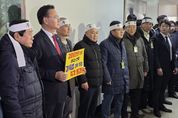 (아름다운교육신문) 9일부터 국회 천막농성을 이어가고 있는 김진태 강원특별자치도지사가 2월 10일 국회 행정안전위원회 제1법안심사소위원회 회의실 앞에서 ‘투쟁’이라고 적힌 머리띠를 두르고 강원특별자치도법 3차 개정안의 조속한 심사를 강력 촉구했다. - 이날 국회 행안위 법안심사소위에서는 행정통합특별법이 상정돼 심사가 진행 중이며, 해당 법안은 11일까지 논의가 이어질 예정이다. 이 자리에는 유상범 국회의원(홍천・횡성・영월・평창)도 ‘강원도민의 삶을 바꾸는 선택. 강특법 3차 개정 즉각 통과’라고 적힌 피켓을 들고 행정안전위원회 의원들에게 강원특별법 3차 개정안의 조속한 처리를 요청했다. 김 지사는 “행정통합 시도인 5극은 빠른 속도로 국회 심사대에 오른 반면, 정부 부처 협의까지 마친 강원특별법 3차 개정안은 17개월 째 단 한 차례도 법안심사 논의가 이뤄지지 않았다”며 강한 유감을 표했다. 이어 “강원・전북・제주・세종, 이른바 3특과 행정수도 특별법안 역시 균형발전 차원에서 신속히 처리돼야 한다”고 강조했다.