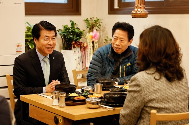 이번 방문은 최근 한파와 경기 불황으로 어려움을 겪고 있는 전통시장을 찾아, 점심식사를 함께하며 상인들의 애로사항을 경청하고, 지원책을 마련하기 위해 진행됐다.