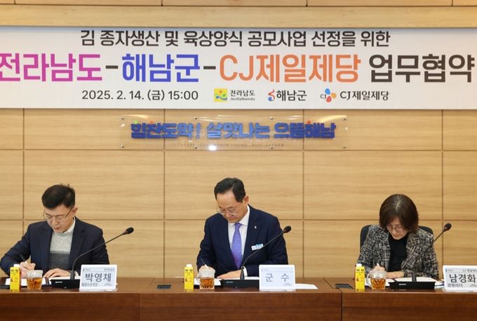 앞으로 해남군과 전라남도, CJ제일제당은 컨소시엄을 구성, 공모사업에 공동 대응하는 한편 김 종자 개발 및 양식 실용화 연구, 육상양식 산업화 및 가공 실증을 통한 상품화, 육상양식 김의 수매와 유통, 판매 촉진 등 전방위적 협력을 추진해 나갈 예정이다.