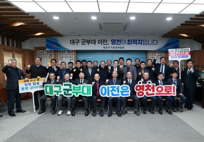 영천시 기독교연합회는 이달 초 대구 군부대 유치를 위한 조찬기도회를 연 데 이어, 지난 11일 영천시청을 방문해 군부대 유치를 지지하는 퍼포먼스를 펼치는 등 적극적인 지지 의사를 보여주었으며, 특히, 각 교회마다 대구 군부대 영천 유치 기원 현수막을 자발적으로 게첨하기로 해 유치운동에 더욱 힘을 보탰다.