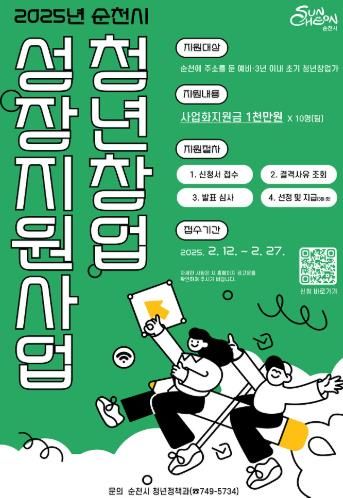 (아름다운교육신문) 순천시 창업연당은 오는 27일까지 ‘2025년 순천시 청년창업 성장지원사업’에 참여할 청년창업가 10명(팀)을 모집한다고 밝혔다.