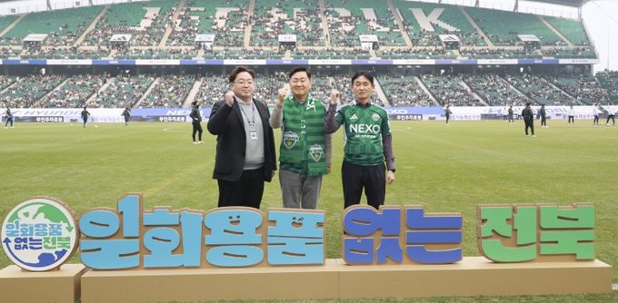 (아름다운교육신문) 전북특별자치도가 16일 전주월드컵경기장에서 2만여 명이 참여한 가운데 ‘일회용품 없는 전북’ 선포식을 개최하고, 일상 속 일회용품 감축 실천 확산을 위한 본격적인 행보에 나섰다.