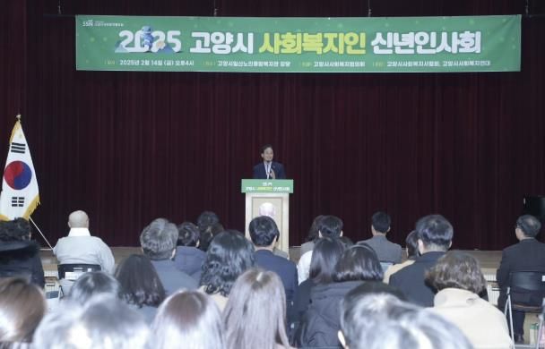 (아름다운교육신문) 고양시사회복지협의회는 지난 14일 고양시일산노인종합복지관에서 고양특례시 사회복지 발전을 기원하고 새로운 도약과 힘찬 새출발을 다짐하는‘2025년 고양시사회복지계 신년인사회’를 개최했다.