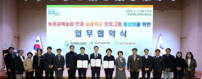 (아름다운교육신문) 경상북도농업기술원은 17일 경상북도교육청, 대구교육대학교와 ‘농촌교육농장 연계 늘봄학교 프로그램 활성화를 위한 업무협약’을 체결했다.