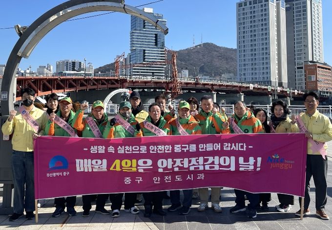 (아름다운교육신문) 부산 중구는 지난 13일 안전점검의 날을 맞이해 중구 안전도시과 및 동주민센터 직원, 자율방재단 등 20여 명이 참가한 가운데 유라리광장 일원에서 "안전점검의 날 캠페인”을 펼쳤다.
