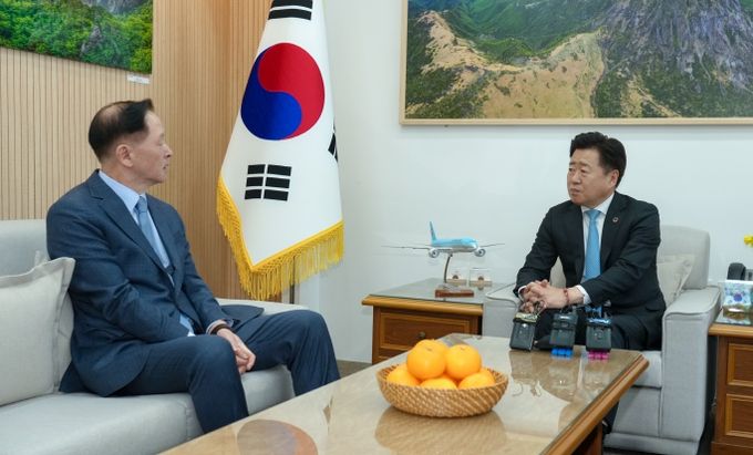 오영훈 제주도지사는 17일 오후 도청 집무실에서 우기홍 대한항공 대표이사 부회장, 이수근 한국공항 대표이사 사장과 만나 제주기점 국내외 항공편 확대와 신규노선 개설 등 다각적인 협력 방안을 집중 논의했다.