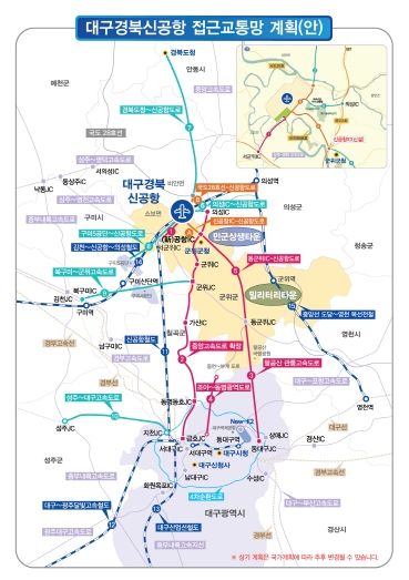 일반 도로망도 개선된다. 조야동명 광역도로 7.9㎞ 구간 4차로 확장 사업이 완료되면 국도 5호선의 정체가 완화되고, 국지도 79호선 팔공산 터널과 연결돼 접근성이 향상될 것으로 기대된다. 또한, 대구경북 광역철도(서대구의성)와 중앙선(의성영천), 대구선(영천동대구)을 연계한 철도망 확충도 추진 중으로, 개통 시 서대구~신공항 구간을 40분 내로 이동할 수 있다.