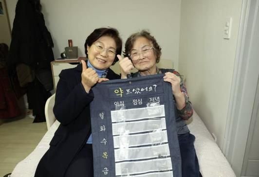 김미경 구청장은 지난 14일 ‘약품달력’으로 건강관리의 실효성을 알리고 주민의 의견을 들으며 실제 사용상의 편리성과 개선점 점검을 위해 관내 어르신 가정에 직접 방문했다.