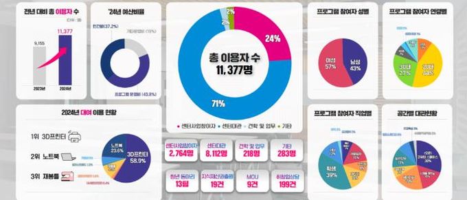 2024년 청년뜰 프로그램 참여 및 세미나실 대관 이용객은 총 11,377명으로 2023년 9,155명과 비교해 이용자 수가 약 24% 증가한 것으로 나타났다.