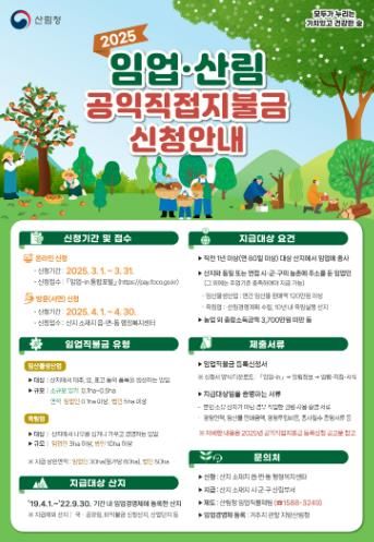 (아름다운교육신문) 경주시가 2025년도 임업·산림 공익직접지불금 신청을 3월 1일부터 4월 30일까지 받는다.
