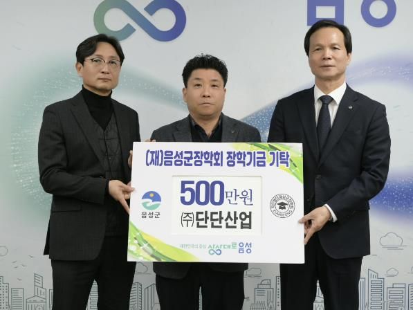 (아름다운교육신문) ㈜단단산업은 지난 19일 군수 집무실에서 지역 인재 육성을 위해 (재)음성군장학회에 장학금 500만원을 기탁했다.