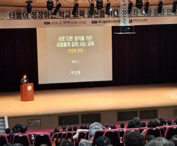 (아름다운교육신문) 전라남도교육청은 2월 19일부터 20일까지 화순하니움 문화스포츠센터와 전라남도 동부지역본부에서 학교 헌법교육 학교장 역량 강화 연수를 실시했다. ‘12·3 계엄사태’를 계기로 민주주의와 헌법의 중요성을 되새기고, 관리자의 교육 역량을 강화하기 위함이다.
